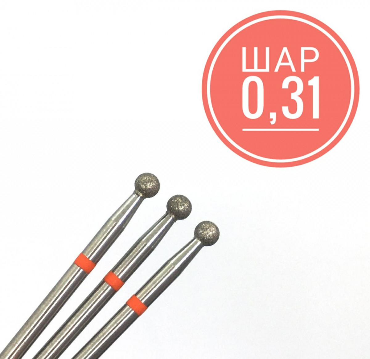 Бор алмазный шаровидный, мелкой зернистости.Применяется в аппаратном маникюре и педикюре для:Придание формы свободному краю ногтя;Обработка мозолей и шероховатостей кожи;Обработка трещин.