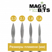 Пламя Алмазное для поднятия кутикулы и прочистки птеригия.Также этой фрезой можно производить срез поднятой кутикулы и обработку боковых валиков.Мягкий абразив.Предназначен для работы с нежной, тонкой и нормальной кожей.Выдерживает все этапы стерилизации.Размеры: длина фрезы 4,5 смДлина головки - 1смДиаметр головки 2,1 мм