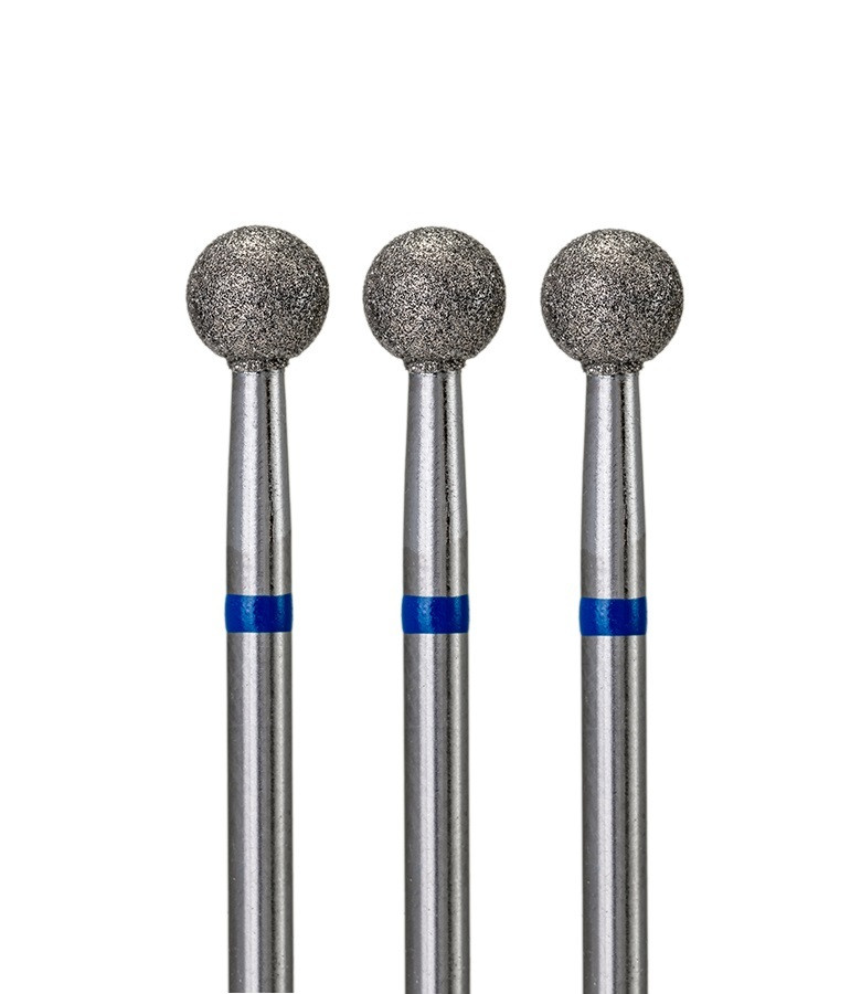 Бор алмазный шаровидный средней зернистости.Применяется в аппаратном маникюре и педикюре для:Придание формы свободному краю ногтя;Обработка трещин;Обработка кутикулы;Обработка и удаление стержневых мозолей.