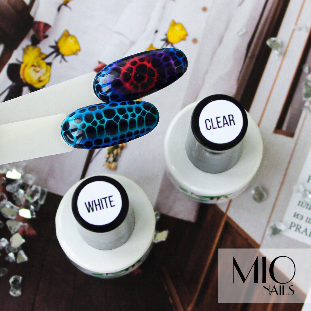 Создавайте эксклюзивные и быстрые дизайны :растекающиеся капли,мраморный эффект,рептилии..‼Работать с этой основой сможет даже начинающий мастер.Способ применения: 1.Нанесите на белую основу White или прозрачную Clear на высушенную подложку(БАЗУ не СУШИТЬ‼‼‼) 2.Нанесите узор любыми гель-лаками,подождите несколько секунд до достижения необходимого эффекта 3.Высушите готовый рисунок и нанесите топ. Дизайн готов!