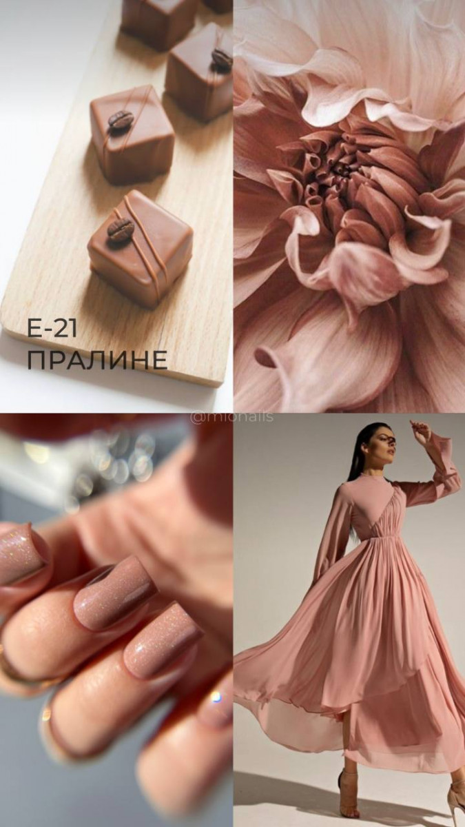 Е-21 - нежный ореховый оттенок с деликатным голографическим мерцанием.ИНФОРМАЦИЯ:Комфортный в нанесении и прекрасно самовыравнивается;Для плотного покрытия достаточно 2 средних слоя;Отлично просыхает;Удобная кисть;Без отдушки.