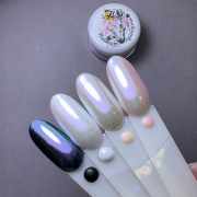 Способ применения:Нанесите базовое покрытие.Нанесите цвет.Перекройте топом без липкого слоя (время просушивания в лампе зависит от её мощности и используемого топа).Возьмите небольшое количество пигмента и начните втирать по поверхности ногтя.Как только получился нужный эффект, удалите излишки мягкой щёткой.Перекройте топом с липким слоем, просушите, далее топом без липкого слоя.