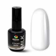 База нежного молочного оттенка.Не желтеет, не скалывается.Имеет оптимальную консистенцию, легко наносится.База жесткая, дает минимальную усадку на ногтях во время ношения.