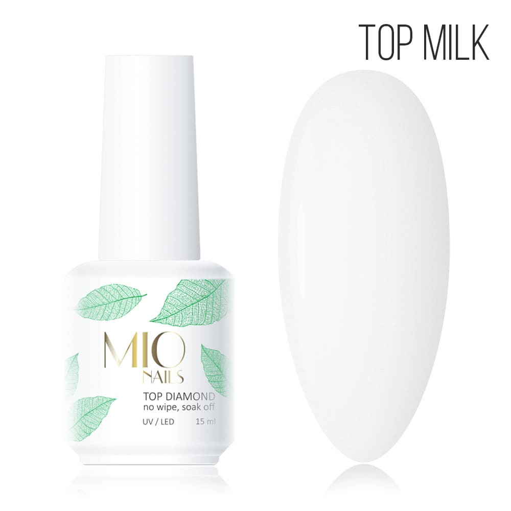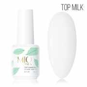 Top MILK - молочный топ без липкого слоя.Время полимеризации LED/UV – 30/120 сек.ИНФОРМАЦИЯ:Создает нежный «припудренный» эффект;Комфортный в нанесении, имеет удобную среднюю консистенцию;Отлично самовыравнивается;Оптимальная пигментация, равномерное нанесение без пятен;Имеет выраженный глянец;Без UV-фильтра.РЕКОМЕНДАЦИИ:Увеличьте время полимеризации в 2 раза. Это позволить сохранить блеск топа более длительное время.