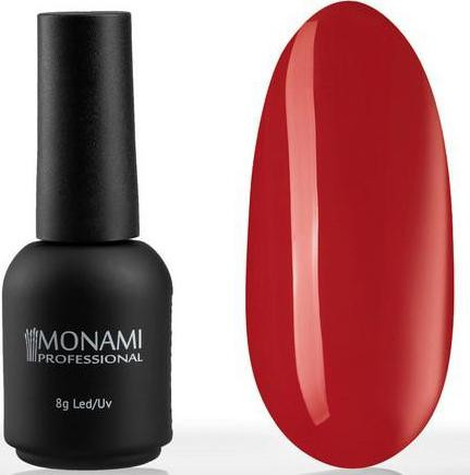 Гель-лак Monami – это непревзойденное качество покрытия и стойкость вашего маникюра. Высокая пигментированность гель-лака Monami позволяет получить насыщенный и глубокий оттенок.Максимальная плотность цвета достигается при нанесении лака в 1-2 слоя. Равномерное распределение материала и удобство в работе гарантирует ровная и упругая кисточка, которая прокрашивает даже самые труднодоступные места. Лак не имеет запаха.Лак изготавливается в России из гонконгского сырья, объем 8 мл.Для того, чтобы получить желаемый результат, необходимо соблюсти технологию нанесения, а именно:Подготовить ногтевую пластину и покрыть ультрабондом.Нанести и полимеризовать в UV (LED)-лампе базовое покрытие Monami.Нанести гель-лак тонким слоем и просушить под лампой. При необходимости повторить данный этап.Завершает процедуру нанесение топового покрытия.