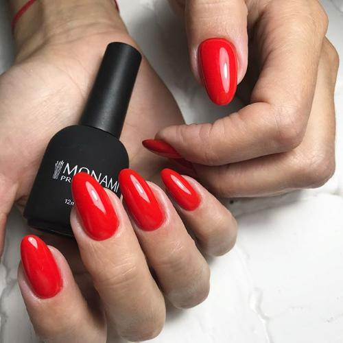 Гель-лак Monami в насыщенном красном цвете без переливов – это непревзойденное качество покрытия и стойкость вашего маникюра.Преимущества:Максимальная плотность цвета достигается при нанесении лака в 1-2 слоя.Равномерное распределение материала и удобство в работе гарантирует ровная и упругая кисточка, которая прокрашивает даже самые труднодоступные места.Лак не имеет запаха.Технология нанесения:Подготовьте ногтевую пластину и покройте ее ультрабондом.Нанесите и полимеризуйте тонкий слой базового покрытия Monami Professional.Нанесите гель-лак и полимеризуйте в лампе UV/LED (48 Вт) не менее 60 сек. При необходимости после полимеризации первого слоя процедуру можно повторить.Нанесите топовое покрытие и полимеризуйте в лампе UV/LED (48 Вт) не менее 60 сек.