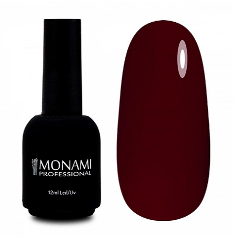 Гель-лак Monami – это непревзойденное качество покрытия и стойкость вашего маникюра. Высокая пигментированность гель-лака Monami позволяет получить насыщенный и глубокий оттенок.Максимальная плотность цвета достигается при нанесении лака в 1-2 слоя. Равномерное распределение материала и удобство в работе гарантирует ровная и упругая кисточка, которая прокрашивает даже самые труднодоступные места. Лак не имеет запаха.Лак изготавливается в России из гонконгского сырья, объем 12 мл.Для того, чтобы получить желаемый результат, необходимо соблюсти технологию нанесения, а именно:Подготовить ногтевую пластину и покрыть ультрабондом.Нанести и полимеризовать в UV (LED)-лампе базовое покрытие Monami.Нанести гель-лак тонким слоем и просушить под лампой. При необходимости повторить данный этап.Завершает процедуру нанесение топового покрытия.