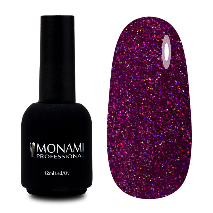 Гель-лак Monami – это непревзойденное качество покрытия и стойкость вашего маникюра. Высокая пигментированность гель-лака Monami позволяет получить насыщенный и глубокий оттенок.Максимальная плотность цвета достигается при нанесении лака в 1-2 слоя. Равномерное распределение материала и удобство в работе гарантирует ровная и упругая кисточка, которая прокрашивает даже самые труднодоступные места. Лак не имеет запаха.Лак изготавливается в России из гонконгского сырья, объем 12 мл.Для того, чтобы получить желаемый результат, необходимо соблюсти технологию нанесения, а именно:Подготовить ногтевую пластину и покрыть ультрабондом.Нанести и полимеризовать в UV (LED)-лампе базовое покрытие Monami.Нанести гель-лак тонким слоем и просушить под лампой. При необходимости повторить данный этап.Завершает процедуру нанесение топового покрытия.
