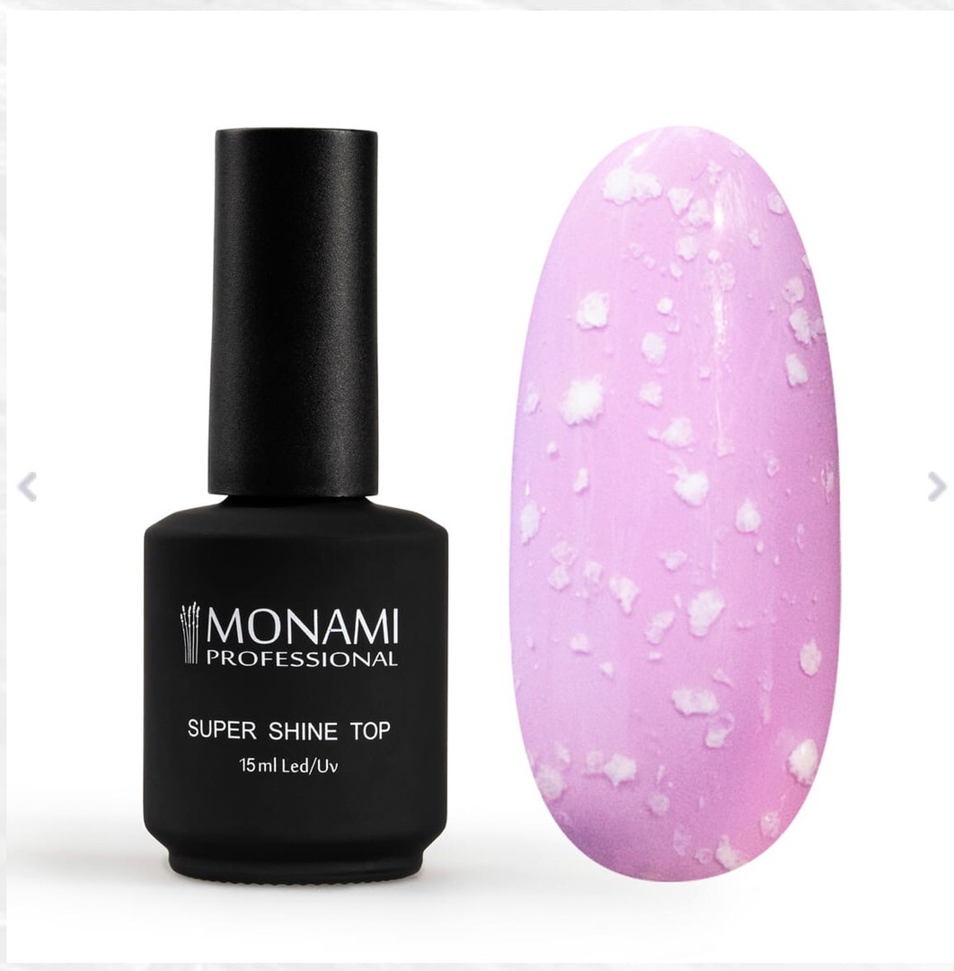 Monami топ Super Shine Top Marble White L 15 мл с белыми хлопьями.