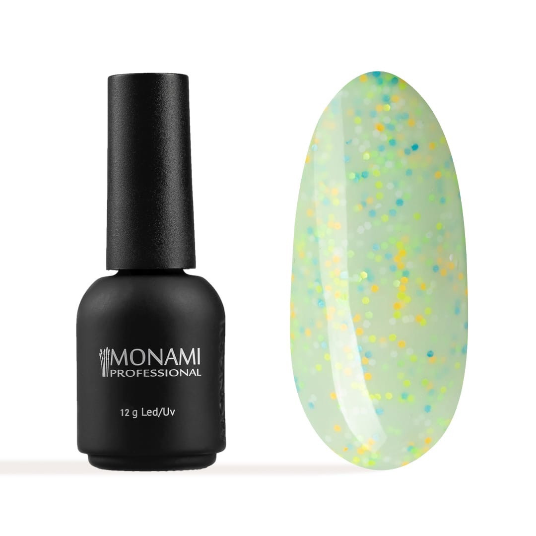 Гель-лак Monami в зеленом цвете с разноцветными конфетти, без переливов – это непревзойденное качество покрытия и стойкость вашего маникюра.Преимущества:Максимальная плотность цвета достигается при нанесении лака в 1-2 слоя.Равномерное распределение материала и удобство в работе гарантирует ровная и упругая кисточка, которая прокрашивает даже самые труднодоступные места.Лак не имеет запаха.