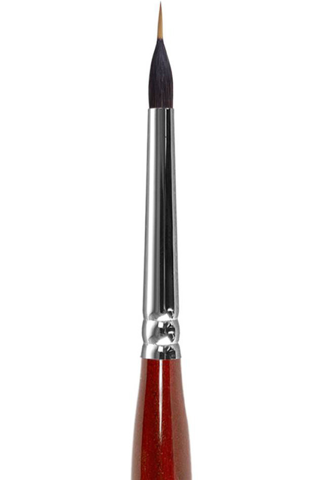 Круглая кисть, из волоса белки с выступающей средней частью из волоса колонка. Используется для прорисовки деталей. Благодаря тому, что белка хорошо впитывает краску можно продолжительное время не отвлекаться на набор краски