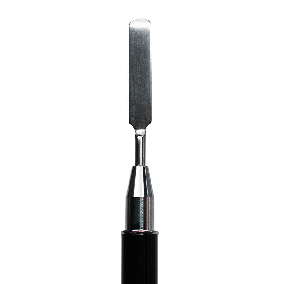 В этом инструменте совмещены два приспособления. С одной стороны – овальная кисть, с помощью которой происходит распределение и формовка материала. С другой – шпатель для «срезания» и распределения полигеля.
