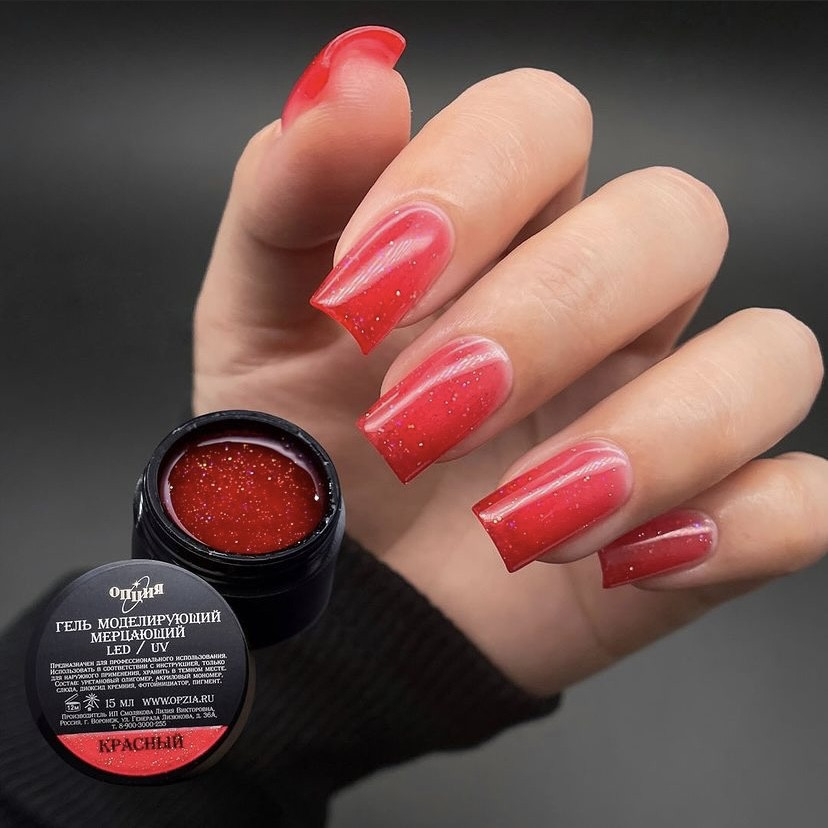 Опция Гель моделирующий самовыравнивающийся "Красный Мерцающий" 15мл
