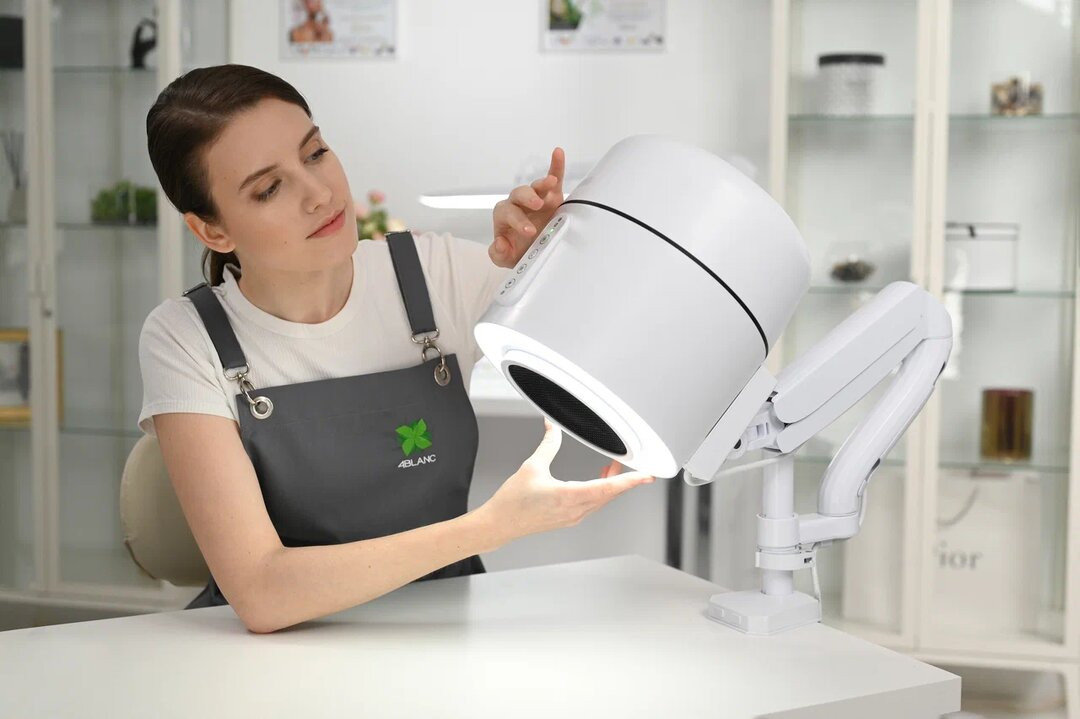 Вытяжка для маникюра и педикюра 4BLANC PROОписание:Вытяжка для маникюра и педикюра 4BLANC PRO с фильтром HEPA H-12 и встроенным LED-светом.Кольцевая лампа дает мягкий, заполняющий и рассеянный световой поток, который позволяет максимально исключить слепые зоны, пропилы, порезы и прочие дефекты.168 ярких светодиода с регулировкой температуры свечения имеют 4 режима интенсивности.Освещение имеет защиту глаз и позволяет снизить общее состояние усталости.Регулировка мощности осуществляется прямо на корпусе вытяжки и имеет три режима.Благодаря мощному двигателю профессиональная вытяжка 4BLANC PRO защитит здоровье мастера и от мелкой пыли, и от частиц опила при снятии материала, а также снизит концентрацию неприятных запахов при процедуре.Инновационное крепление поможет легко отрегулировать и закрепить маникюрную вытяжку 4BLANC в нужном положении там, где вам удобно — на столе для маникюра или тумбе.Материал фильтра HEPA Н-12 - высший стандарт очистки воздуха. Это максимальная защита от мельчайшей пыли, аллергенов, вирусов, бактерий и неприятных запахов.Площадь фильтрации составляет 9721 см2Встроенный УЛЬТРАФИОЛЕТ в вытяжке 4BLANC PRO, такой же как и при дезинфекции хирургических операционных, обеззараживает накопившуюся внутри пыль.Для максимального удобства очистки вытяжкавращается на 360° и имеет доступ к двигателю за счёт съёмной защитной решетки на магнитах.Технические характеристики:Двигатель:Регулировка режимов мощности всасывания – 4 режима:1– выключено; 2 – включение на 30% мощности вытяжки; 3 – включение на 60% мощности вытяжки; 4 – включение на 100% мощности вытяжки.Входное напряжение двигателя – 230 ВПотребляемая мощность двигателя – 170 ВтМаксимальные обороты двигателя - 4100 об/минМаксимальная производительность – 936 м3/чОсвещение:Регулировка режимов яркости освещения – 5 режимов:1 – включение на 100% яркости; 2 – включение на 75% яркости; 3 – включение на 50% яркости; 4 – включение на 25% яркости; 5 – выключение.Регулировка цветовой температуры – 3 режима:1 – теплый свет (Температура свечения – 3040 К)2 – смешанный свет (Температура свечения – 4300 К) 3 – холодный свет (Температура свечения – 6400 К)Освещенность – 2250 ЛкВходное напряжение – 27 ВПотребляемая мощность освещения - 28 ВтКоличество светодиодов – 168штКомплектацияВытяжка с пантографом - 1 шт.HEPA-фильтр - 1 шт.Набор для чистки: кисть – 3 шт.Cалфетка из микрофибры – 1 шт.Шестигранный ключ – 2 шт.Стяжка-липучка – 1 шт.Верхняя часть струбцины с фиксирующим кольцом – 1 шт.Нижняя часть струбцины – 1 шт.Пластиковая подложка струбцины – 1 шт.Резиновая защитная подложка прижимной части струбцины – 1 шт.