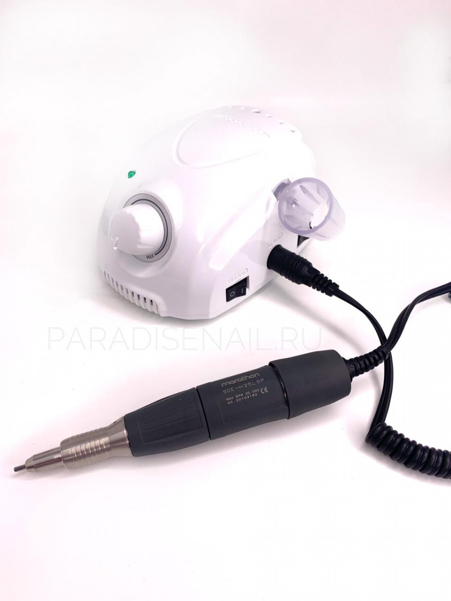 Marathon 3 Champion по своим техническим характеристикам мощнее предыдущих моделей в 1,5 раза.Эргономичный дизайн, наличие держателей под наконечник и инструмента на корпусе, делает эту модель более удобной в работе.Микромотор Marathon 3 Champion относится к классу коллекторных электрических машин и предназначен для шлифования, полирования и легкого фрезерования всех видов материалов с применением широкого спектра вращающегося обрабатывающего инструмента: фрезы, боры, полиры, отрезные круги, щетки т.д.Микромотор используется в зуботехнических лабораториях, косметологических салонах и в домашних условиях.Варианты Цвета: БелыйПреимущества:• Эргономичный дизайн.• Наличие держателей под наконечник и инструмента на корпусе делает эту модель более удобной в работе.• Marathon 3 Champion по своим техническим характеристикам мощнее предыдущих моделей в 1,5 раза.Технические характеристики:• Напряжение питание – 220110 Вольт переменного тока.• Максимальная потребляемая мощность – 45 Ватт.• Режим работы – продолжительный.• Продолжительность непрерывной работы – 1 час.• Регулировка оборотов – плавная.• Диапазон регулировки оборотов – от 0 до максимальной (определяется типом наконечника).• Наличие реверса наконечника – Да.• Выбор режимов управления ручной / от педали – Да.• Тип педали — Дискретная.• Рабочий диапазон температуры окружающего воздуха — от +15C до +35C.• Цвета корпуса — белый.Комплектация:• Блок управления.• Педаль.• Подставка под наконечник.• Наконечник H35LSP