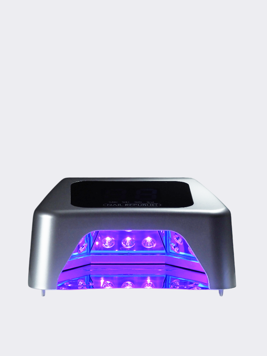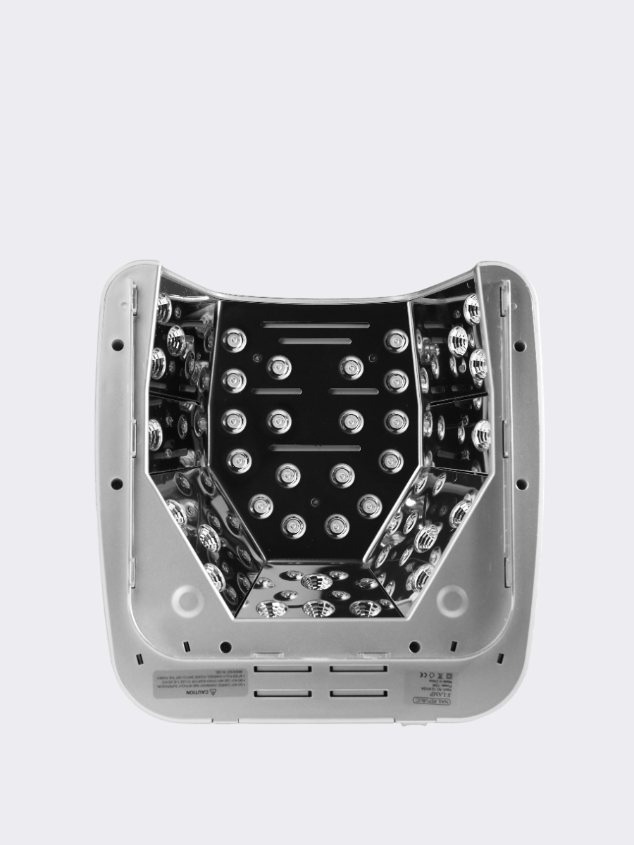 X-LAMP от NR – инновационная LED-лампа, которая обеспечивает 100% полимеризацию даже высокопигментированных продуктов с обозначением LED. Мы позаботились обо всех деталях в работе nail-мастера и создали современное устройство со следующими преимуществами:- лампа имеет съемное дно, что удобно при работе с педикюром- беспроводная лампа имеет встроенный аккумулятор делает лампу мобильной на 6-8 часов непрерывной работы с клиентами.- панель управления таймером расположена лицом к мастеру.- звуковой сигнал срабатывает в начале и в конце полимеризации.- лампа имеет два режима включения: ручной и автоматический. При одновременном нажатии первых 3 кнопок, включается режим непрерывной работы (3 минуты полимеризации, 1 минута охлаждения).- звуковой сигнал отключается долгим нажатием первой кнопки таймера.- внутренняя конструкция позволяет работать с длинными формами, не опасаясь, что ноготь заденет заднюю стенку.- рефлекторы на светодиодах создают направленное излучение, которое отражается от зеркального дна и распределяется со всех сторон на 360 градусов.- фронтальная часть спроектирована так, что область рассеивания света сокращается. Это исключает полимеризацию продуктов рядом с лампой и минимизирует воздействие на зрение клиента.- лампа выполнена из премиального пластика цвета «серый металлик».- X-Lamp долговечнее гибридных ламп. Средний срок службы составляет 6 лет.Технические характеристики: 1. Мощность: 72 Ватт 2. Напряжение: 16.06А/2А 3. Количество диодов LED: 36 шт. 4. Таймер: 15, 30, 60, 90 сек. 5. Габариты: 240*245*120 мм 6. Вес: 1,1 кг. 7. Мощность аккумулятора: 5200 мАч. 8. Длина волны: 395 – 405 нм.В комплект входит: 1. Лампа со съёмным дном 2. Зарядное устройство 3. Руководство по эксплуатацииГарантия 12 месяцев