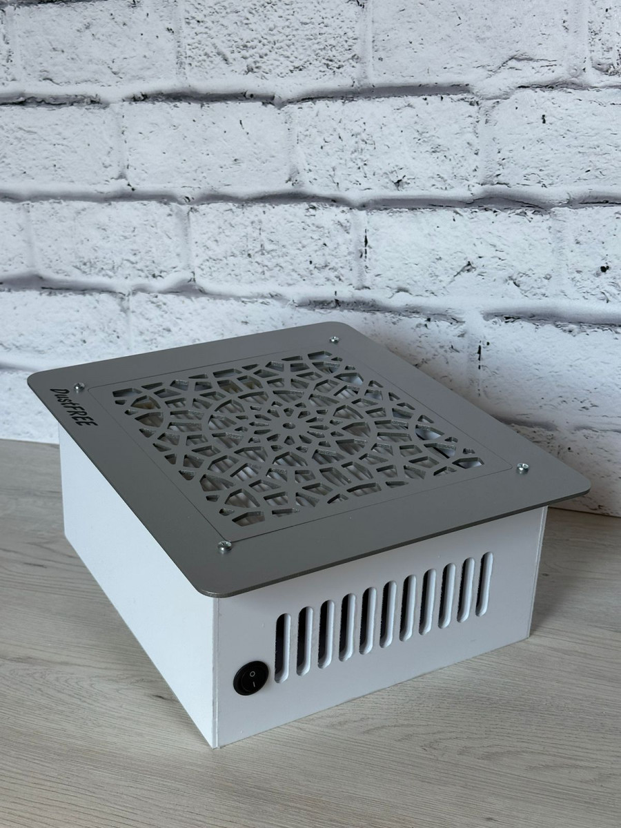 Готов к работе «из коробки» — не требуется дополнительной сборки. Достаточно вырезать отверстие в столе. На полную установку с момента распаковки уходит не более 10 минутБлагодаря мощности воздушного потока, появилась возможность использовать салфетки из нетканной синтетики в качестве дополнительных фильтровПростота в обслуживании — для очистки фильтра требуется несколько легких движений, нет необходимости лезть под столЦельный корпус — никаких «ручейков» пыли и подсасывания воздуха. Только 100% полезной работы.— [ ] Сменный фильтр тонкой очистки— [ ] Большая площадь и высота захвата— [ ] Канальный двигатель, с удлиненными лопастями «вверх» поднимает эффективность тяги на 90% обеспечивая давление в 330ПаПроизводительность 500м3/чМощность 59-68 ВтСкорость двигателя 2380-2600 об/минУровень шума 52 дБА