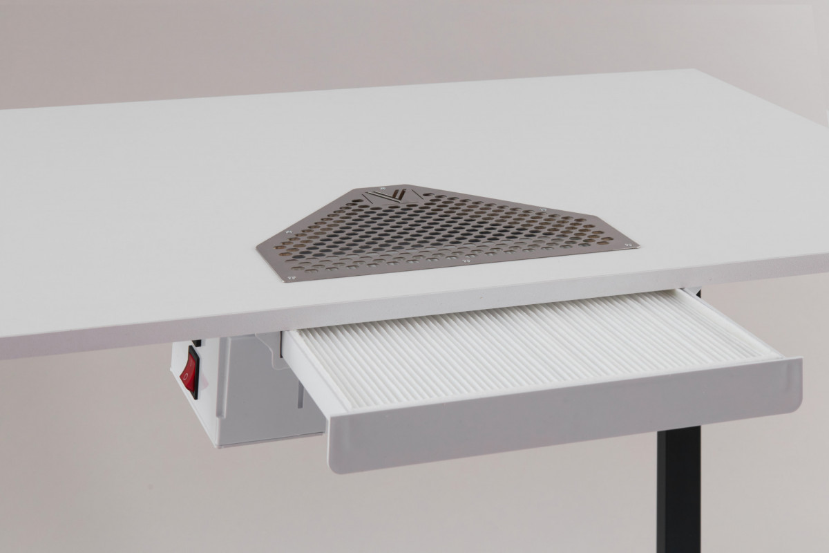 Данная вытяжка хорошо работает с мелкими и средними пылевыми фракциями.Если Вы работаете с гелем и гель-лаком и снимаете материал мелкообразивными фрезами (красная, зелёная и, возможно, синяя насечка твердосплава), тогда оптимальным решением будет М550. В комплекте вытяжки идут все необходимые комплектующие для ее установки, дополнительно ничего покупать не надо.Возможно наличие легкой вибрации.Пропускная способность - 500 м3/часЭнергопотребление - 70 ВтУровень шума - 64 дБГабариты вытяжки (д/ш/в) - 33,5/28/10,8 см.Напряжение - 230 ВольтНабор фильтров - идет в комплектеНаличие отводов - идут в комплектеНаличие регулятора мощности - отсутствует Cтрана производитeль вентилятора - ГерманияГарантия - 24 месяца