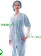 Материалом изготовления одноразовых халатов служит прочный спанбонд.Это нетканый материал искусственного происхождения.Изделия из него выходят прочными, устойчивыми к порывам, трещинам.Также спанбонд не реагирует на перепады температур.