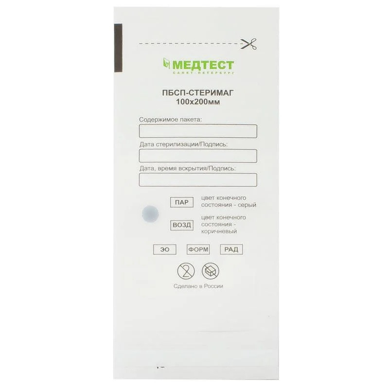 Крафт-пакеты БЕЛЫЕ 100*200 "Медтест" 100шт