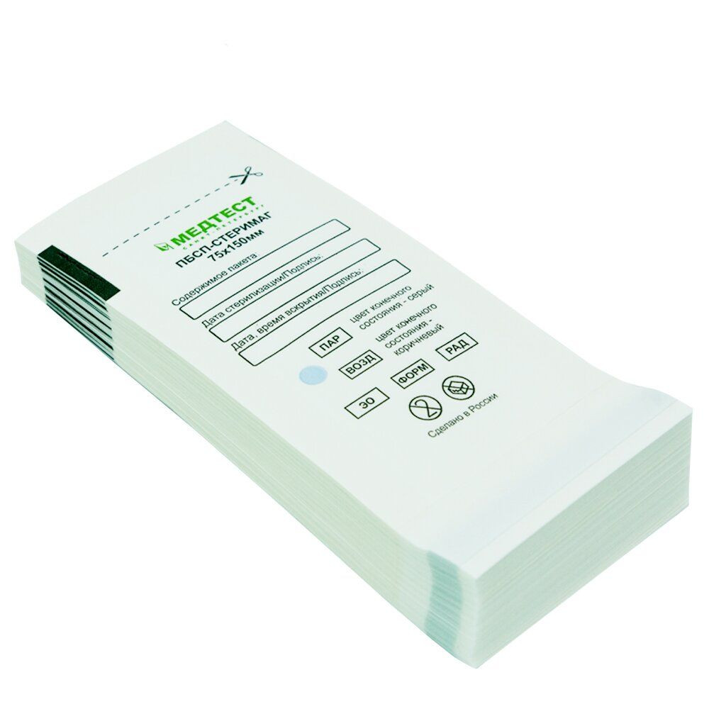 Крафт-пакеты БЕЛЫЕ 75*150 "Медтест" 100шт