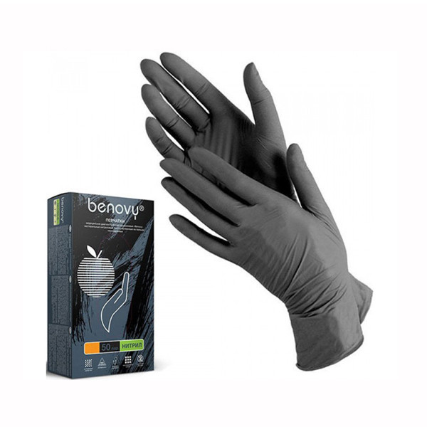 Перчатки Benovy нитриловые СЕРЫЕ S 50пар