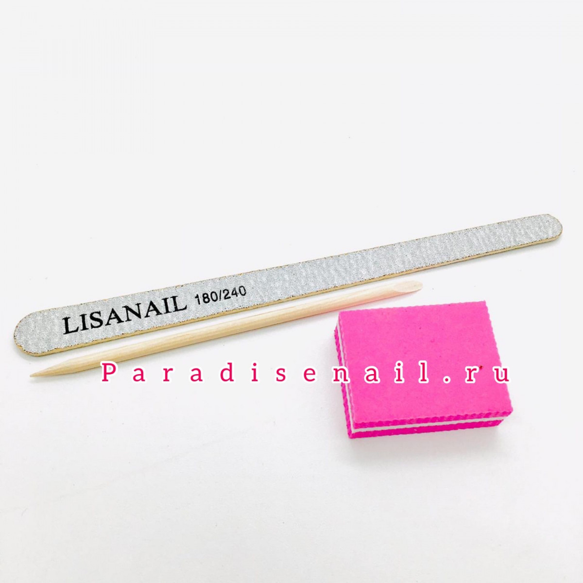 LisaNail Набор для маникюра одноразовый 1уп (баф+пилка+апельсиновая палочка)