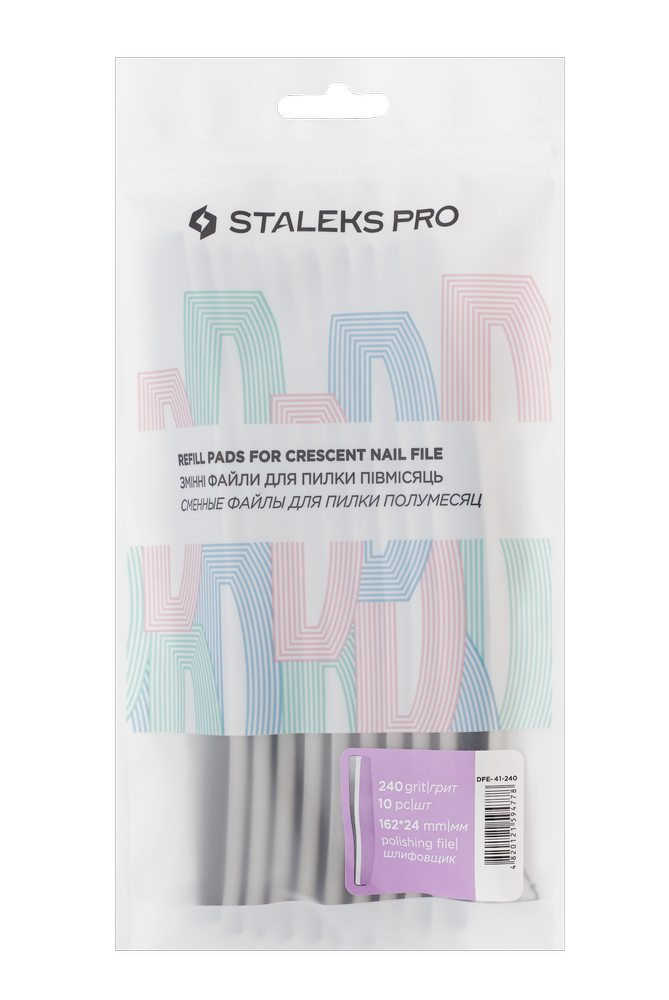 Набор сменных файлов для пилки полумесяц (шлифовщик) EXPERT 21 240 грит (10 шт) DFE-41-240 бережно и эффективно шлифует натуральные ноготки, убирая мелкие дефекты и неровности. На гладкую поверхность лак ложится хорошо и распределяется равномерно, маникюр держится дольше и выглядит аккуратнее.Еще одно преимущество одноразовых наклеек — безупречная гигиена. После каждой процедуры файлы из набора EXPERT 21 DFE-41-240 подлежат замене, а металлическая основа — стерилизации в автоклаве: болезнетворные бактерии и вирусы уничтожаются, для работы с другим клиентом используется новый абразив. Мягкая пенная подложка гарантирует высокое качество шлифовки, прочный самоклеящий слой не боится влаги и не рвется во время работы.