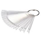 Веерная палитра - самый удобный формат для демонстрации оттенков гель-лаков, баз и различных дизайнов.С помощью веерной палитры клиент сможет не только рассмотреть многообразие цветов и дизайнов, но и примерить их на свои ногти, просто приложив понравившийся оттенок. Это позволит увидеть клиенту, как оттенок смотрится на коже, а также с легкостью подобрать разные гармоничные сочетания.Палитра рассчитана на 50 цветов. Все образцы скреплены плотным и крепким кольцом, которое гарантирует долговечное использование.Все образцы в палитре имеют форму квадрат - одну из самых распространенных у клиентов. Цвет образцов - прозрачный, наиболее приближенный к естественным ногтям. Так, при нанесении различных гель-лаков и баз на такие образцы вы сможете увидеть их в деле, рассмотреть консистенцию, плотность пигментированность.