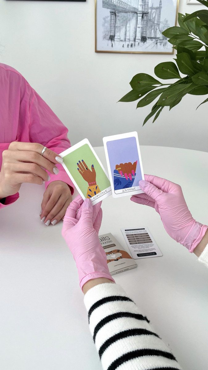Клиент приходит,не зная какой маникюр хочет? А ты не заешь,что предложить?Хватит ломать голову! Мы сделали все за тебя.Игра для маникюра5 раундов, в которых клиент выберет какие ногти сделать-длинные или короткие, а может быть матовые?Самое интересное-если выпадет карточка «с дизайном», то клиенту дается еще 9 карточек, где он сможет выбрать чем дополнит свой маникюрВтирка,стемпинг, градиент, или быть может слайдер?Преврати привычный маникюр в увлекательную игру вместе с IBDI NAILS