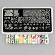 Размер пластины: 12*6 см Небольшой формат делает пластину удобной для размещения на столе мастера, а кожаный кейс для хранения пластин добавит стильный акцент в ваше рабочее место.Пластина также имеет две защитные синие пленки, поэтому стоит внимательно осмотреть её перед использованием и снять два слоя защитного синего материала.Способ применения:выбираем пластину для стемпинга с понравившимся узором или рисунком;- выбираем лак и наносим его на выбранный рисунок при помощи кисточки;- скрапером убираем излишки лака, держа его под углом 45 градусов;- перекатывающим движением переносим рисунок на штамп, а потом на ручки счастливой обладательницы стемпинг-дизайна