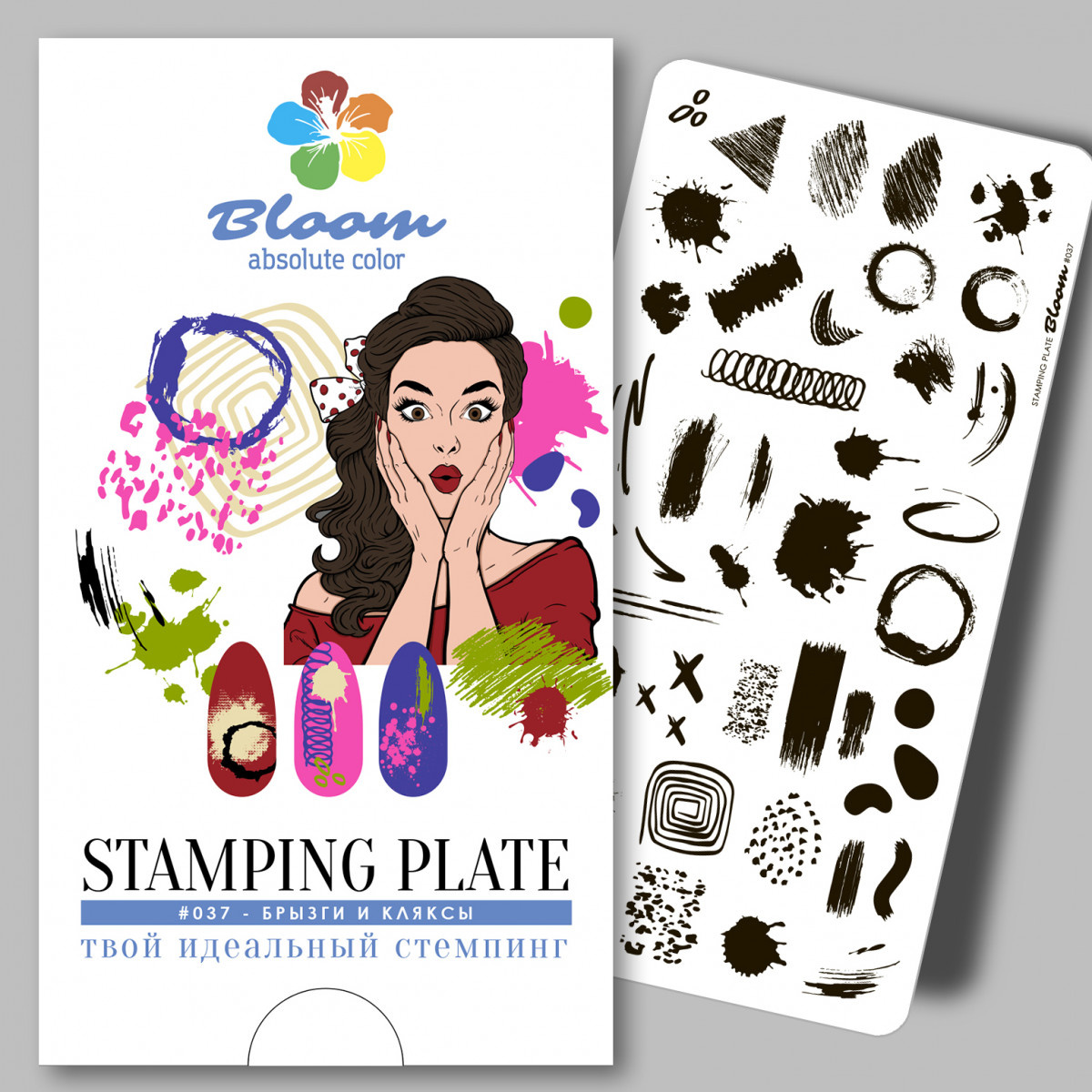 Bloom Пластина для стемпинга 037 Брызги и кляксы