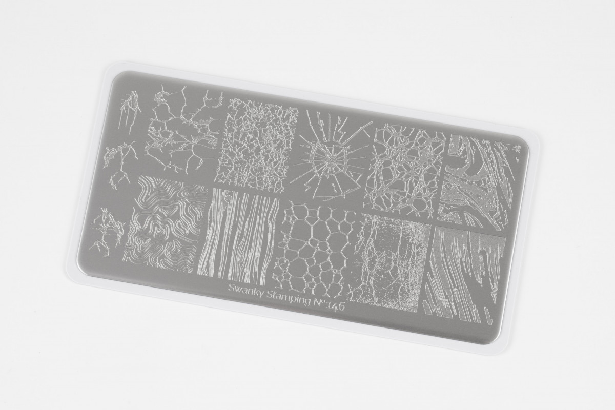 Уникальная пластина с паттернами под различного вида текстуры!Тут представлены изображения текстур древесной коры, битого стекла, трещин, а так же каменные и мраморные мотивы. Универсальная пластина, с которой прекрасно можно сочетать изображения разных тематик, так и использовать паттерны в качестве самостоятельного дизайна.Способ применения:1. Снимите синие защитные пленки.2. Обезжирьте пластину жидкостью.3. Очистите штамп при помощи ролика или скотча.4. Нанесите лак на рисунок и проведите скрапером под углом 45 по поверхности.5. Плавным перекатывающим движением перенесите рисунок на штамп.6. Отпечатайте рисунок со штампа на ногтевую пластину.7. Поздравляем, ваш дизайн готов!