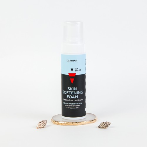 SKIN SOTENING FOAM - профессиональная пенка-размягчитель для удаления мозолей и натоптышей с мочевиной 25%.Пена создана специально для смягчения эпидермиса перед проведением процедуры педикюра, для мягкого и быстрого устранения огрубевшей кожи, мозолей и натоптышей на стопах.Комплекс мощных размягчающих компонентов эффективно разрыхляет ороговевшую кожу стоп и подготавливает проблемные зоны к обработке фрезой или теркой. Препарат обогащён гелем алоэ и экстрактом календулы, оказывающими бактерицидное, смягчающее и заживляющее действие на кожу стоп.Подходит для размягчения ногтевых боковых валиков, участков с гиперкератозом, при этом не травмирует здоровую кожу. Регулярное применение препарата предотвращает последующее неравномерное нарастание сухой ороговевшей кожи, появление натоптышей и трещин.Пенка-размягчитель поможет провести профессиональную процедуру даже для людей с тонкой кожей, диабетической стопой и с чувствительной кожей стоп.Активные компоненты- мочевина (25%) активно разрушает связи ороговевших клеток эпидермиса, способствует их сильному размягчению и отшелушиванию, создает пролонгированный эффект увлажнения без пересушивания кожи, повышает эластичность кожи после проведения процедуры- глицерин эффективно смягчает, препятствует дегидратации кожи- молочная кислота размягчает дерму, интенсивно отшелушивает ороговевшие клетки- гель алоэ поддерживает гидролипидный баланс кожи, увлажняет, снимает воспаление, устраняет шелушения- экстракт календулы ускоряет заживление мелких травм кожи, успокаивает раздражения, повышает эластичность и упругость кожи, обладает антибактериальным действием- мягкие поверхностно-активные вещества (ПАВ) обеспечивают бережно очищение кожиПенка-размягчитель помогает справиться с такими проблемами, как:натоптышисухие мозолитрещиныгрубая ороговевшая кожагиперкератоз