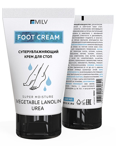 СуперУвлажняющий крем для стопс 10% содержанием мочевиныПрепятствует сухости, уплотнению ороговевшего слоя, растрескиванию кожи на пятках.Растительный аналог ланолина в комплексе с мочевиной снижает ощущения стянутости и дискомфорта, смягчает, восстанавливает гладкость и эластичность кожи. Лёгкая эмульсия, впитывается при нанесении.Рекомендуется для завершающего этапа педикюра.Способ применения: нанесите небольшое количество крема на чистую сухую кожу стоп. Подходит для ежедневного применения.