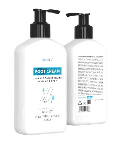 СуперУвлажняющий крем для стопс 10% содержанием мочевиныПрепятствует сухости, уплотнению ороговевшего слоя, растрескиванию кожи на пятках.Растительный аналог ланолина в комплексе с мочевиной снижает ощущения стянутости и дискомфорта, смягчает, восстанавливает гладкость и эластичность кожи. Лёгкая эмульсия, впитывается при нанесении.Рекомендуется для завершающего этапа педикюра.Способ применения: нанесите небольшое количество крема на чистую сухую кожу стоп. Подходит для ежедневного применения.
