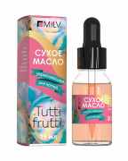 Сухое укрепляющее масло для ногтей «TUTTI FRUTTI»Масло рекомендовано для ломких, повреждённых ногтей и сухой кутикулы. Приятно наносится, быстро впитывается без липких следов, жирного блеска и ощущения плёнки. Оставляет на коже бархатистое ощущение и нежный фруктовый аромат.Укрепление и уход:смола мастикового дерева в составе средства повышает прочность ногтей при ежедневном использовании в течение 1 месяцавитамины А, Е питают ногти и кутикулу, препятствуют сухостиСпособ применения: нанесите капельку масла на ноготь. Массажными движениями вотрите в зону ногтя и кутикулы. Не смывайте. Подходит для ежедневного использования.