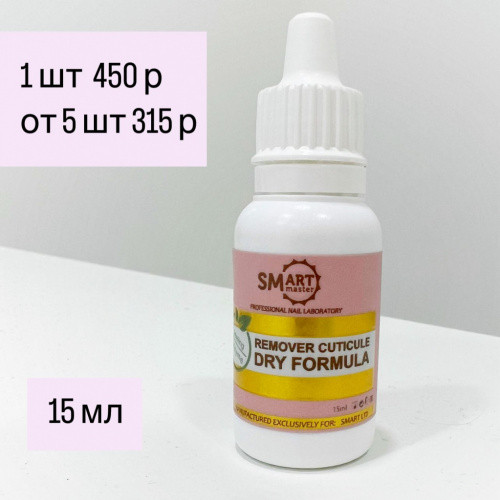 СУХОЙ РЕМУВЕР ДЛЯ КУТИКУЛЫУникальная формула ферментативного ремувера позволяет быстро размягчить и удалить кутикулу и грубую кожу вокруг ногтей. Быстро впитывается и не оставляет следов, благодаря чему можно использовать его при аппаратном маникюре с фрезами. Ремувер не дает отслоения гель лака при покрытии сразу после использования ремувера.СПОСОБЫ ПРИМЕНЕНИЯ:-европейский необрезной маникюр:нанесите каплю на зону кутикулы и боковые валики. Через 1-2 мин удалите кутикулу апельсиновой палочкой или пушером.-аппаратный маникюр:нанесите каплю на зону кутикулы и боковые валики. Через 1-2 мин обработайте кутикулу фрезой шлифовщиком.