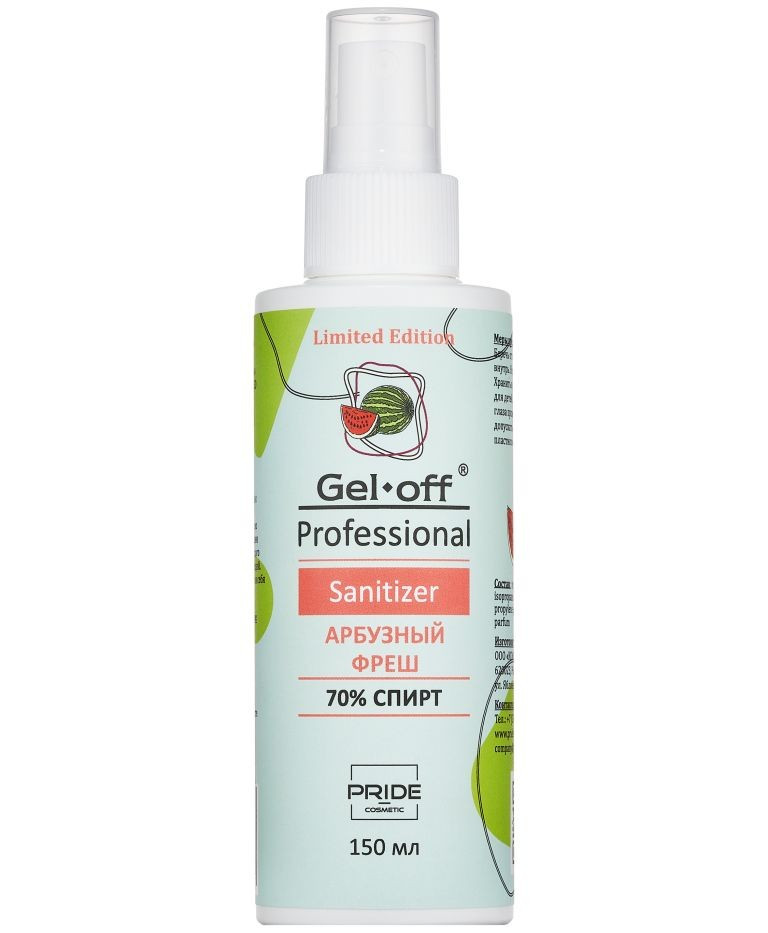 Универсальное очищающее средство для рук и ногтей с антибактериальным эффектом Sanitizer.Аромат ветра и свободы - таково первое впечатление от Лимитированной коллекции SANITIZER «Арбузный фреш». Окунитесь в жаркое лето, наполненное соблазнительными фруктовыми и ягодными запахами.Используется для гигиенической обработки рук, ногтей, а также рабочих поверхностей и инструментов.Удаляет до 99,9% микробов и бактерий.Имеет приятный приглушенный аромат. Быстро впитывается. Не сушит кожу.Снижает риск появления грибка.Экономичный расход.