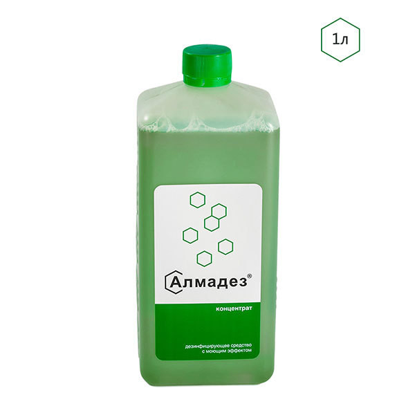 Дезcредство с моющим эффектом. Концентрат.Состав: cодержит в своем составе в качестве действующих веществ N,N-бис-(3-аминопропил) додециламина 0,5%, алкилдиметилбензиламмоний хлорида 6%, полигексаметиленгуанидин гидрохлорида 2,3% и поли-(1-гексаметилен) бигуанидин гидрохлорид 0,1%, а также моющий компонент, отдушку и воду. рН 1% водного раствора средства 6,9.Срок хранения концентрата — 5 лет.Срок хранения рабочего раствора — 28 суток.