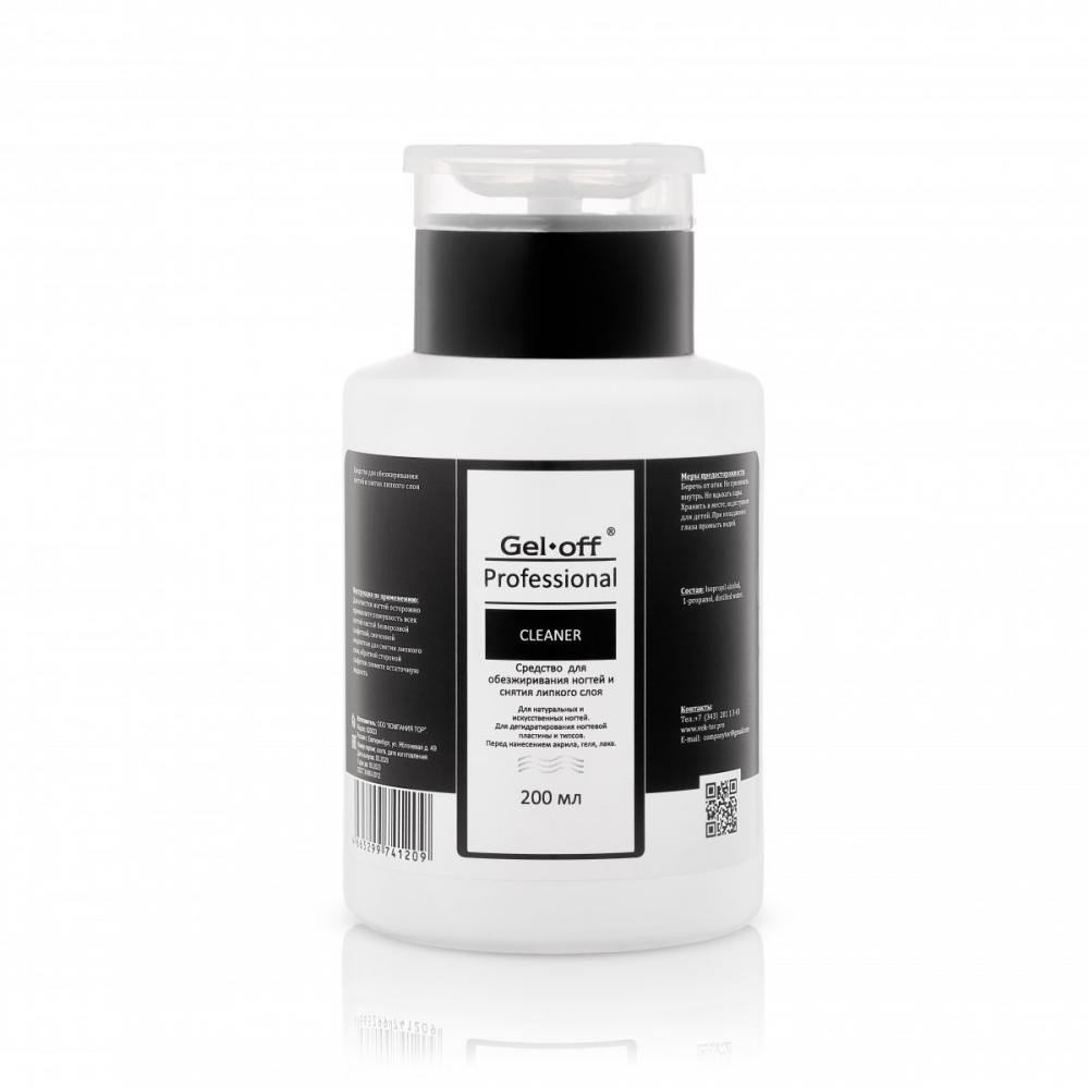 Линейка Gell Off Professional идеальна для использования мастерами маникюра и педикюра.Эффективный состав из активных очищающих и смягчающих (масло Е, касторовое масло) компонентов позволяет тщательно, но бережно очищать ногти. Средства подходят для работы с любыми системами декорирования и эффективно удаляют покрытие разного вида.Средство для обезжиривания ногтей и снятия липкого слоя.Подходит для натуральных и искусственных ногтей.Для дегидратирования ногтевой пластины и типсов.Применяется перед нанесением акрила, геля, лака.Рекомендации по применению:Для очистки ногтей осторожно промокните поверхность всех ногтей чистой безворсовой салфеткой, смоченной жидкостью для снятия липкого слоя, обратной стороной салфетки снимите остаточную жидкость.